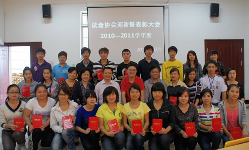 2011年10月18中午和19日晚上,读者协会“迎新暨总结表彰大会”分别在东湖和马坡岭校区图书馆举行。院团委、图书馆的老师、团委及学社联学生干部代表及读者协会会员代表共150多人参加了会议。会议分别由两校区读者协会赵丽鸣、李龙主持。